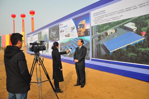 (图为会议结束后,伊克赛吉董事长韩丰接受河北电视台记者的专访)